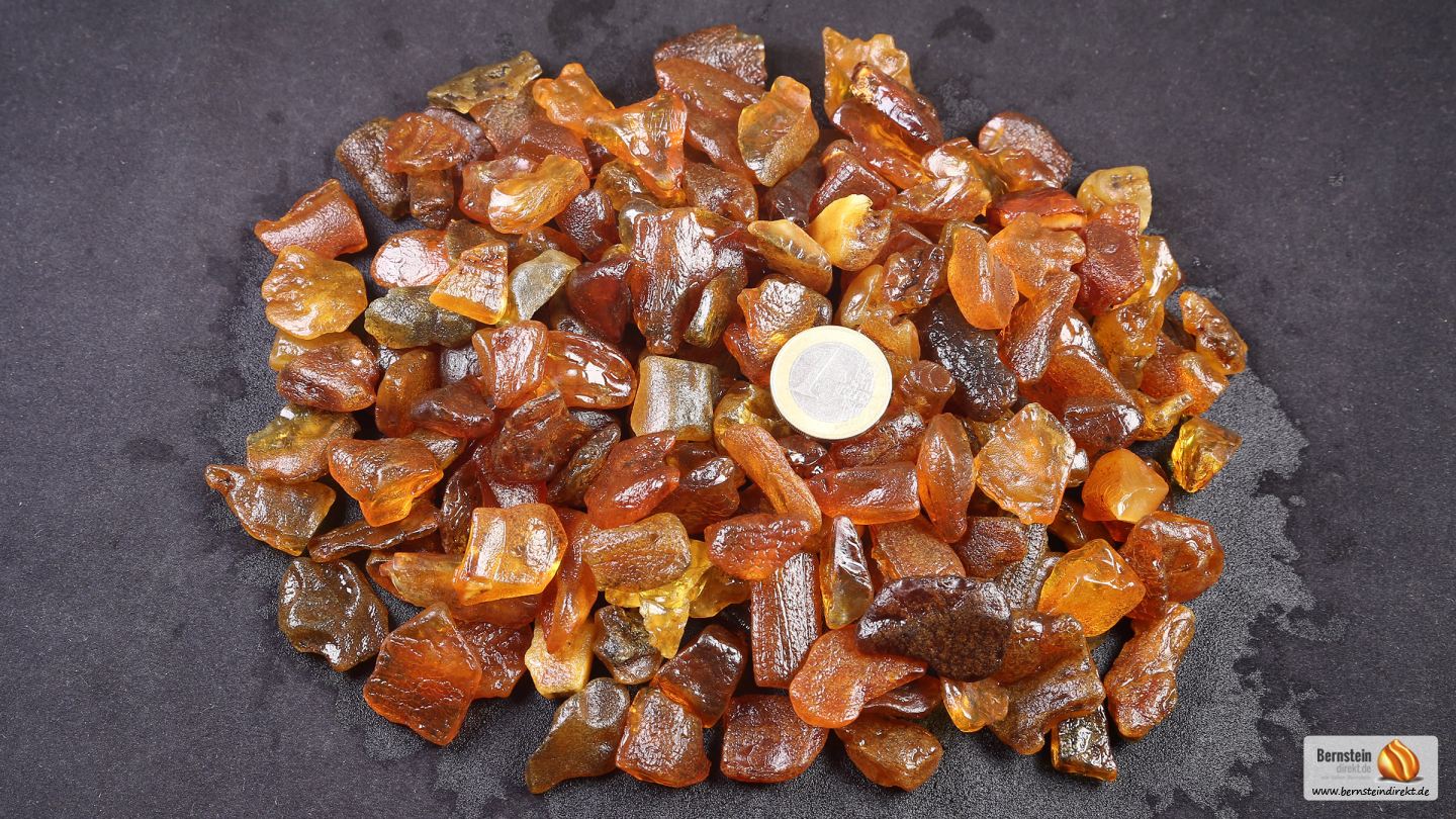 Die Bernsteine sind ca. 1 bis 2 Gramm groß, vorgewaschen und frei von Sediment. Sie sind unbehandelt und eignen sich hervorragend zum Schleifen und Polieren.