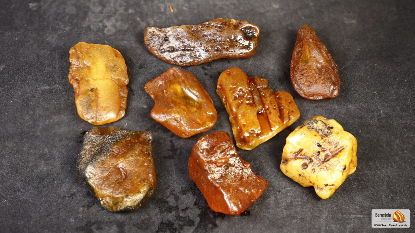 Die Bernsteine sind ca. 10 bis max. 20 Gramm groß, vorgewaschen und frei von Sediment. Sie sind unbehandelt und eignen sich hervorragend zum Schleifen und Polieren.