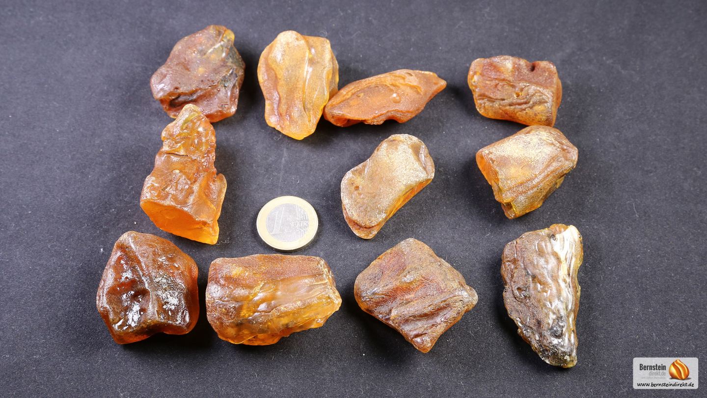 Die Bernsteine sind ca. 10 bis 20 Gramm groß, vorgewaschen und frei von Sediment. Sie sind unbehandelt und eignen sich hervorragend zum Schleifen und Polieren.