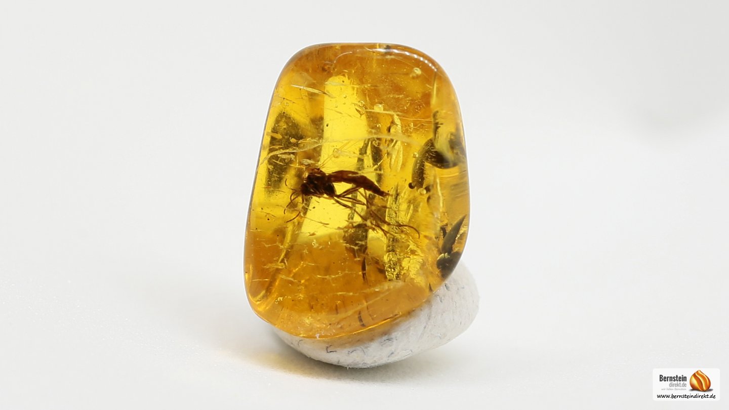 Es kann nicht ganz ausgeschlossen werden, dass manche der Inklusen leicht verlumpt bzw. beschädigt sind (z.B. eine kleine Öffnung in den Hohlraum, wobei auch dies interessant sein kann). Die Bernsteine sind etwa 1 – 3 Gramm groß, überwiegend von Hand geschliffen und poliert.