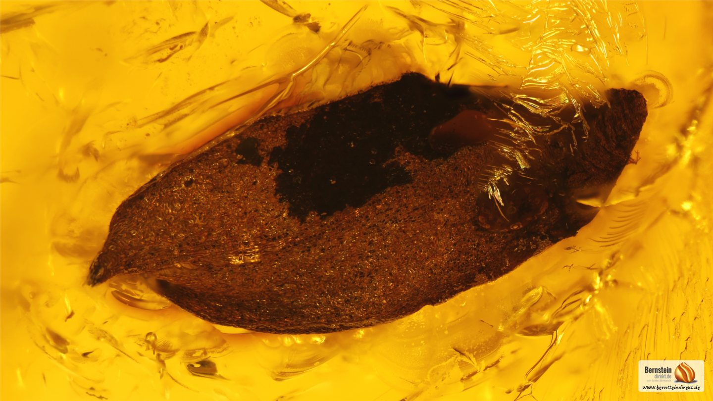 Ein kleines Blatt als Einschluss im Baltischen BernsteinBlatt im BernsteinBlatt als Einschluss im Bernstein