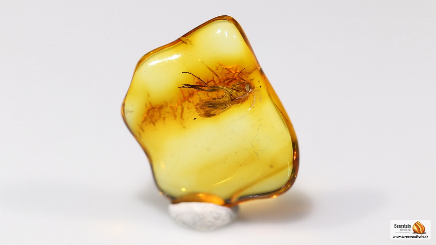 Allgemeine Beschreibung Eine Langbeinfliege als Inkluse in einem 0,4 Gramm großen Baltischen Bernstein. Leider ist die Fliege auf einer Seite nicht komplett, auf dem Foto gut zu erkennen. So ist es jedoch möglich in den Hohlraum der Inkluse zu blicken. Herkunft: Baltischer Bernstein (Succinit)Artikelnummer: BI1712025 Maße und GewichtMaße: 12,6 x 10,6 x 3,4Gewicht: 0,40 g