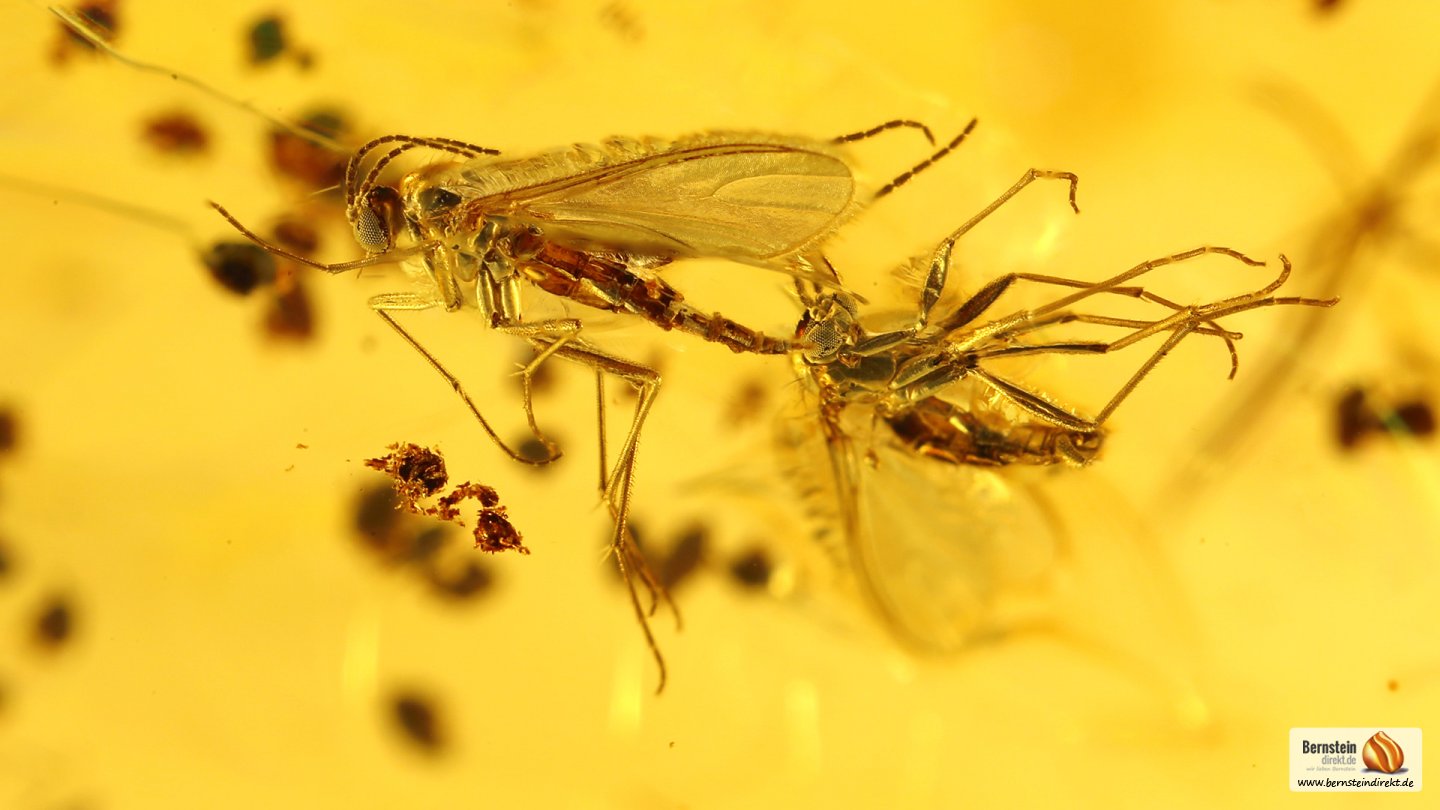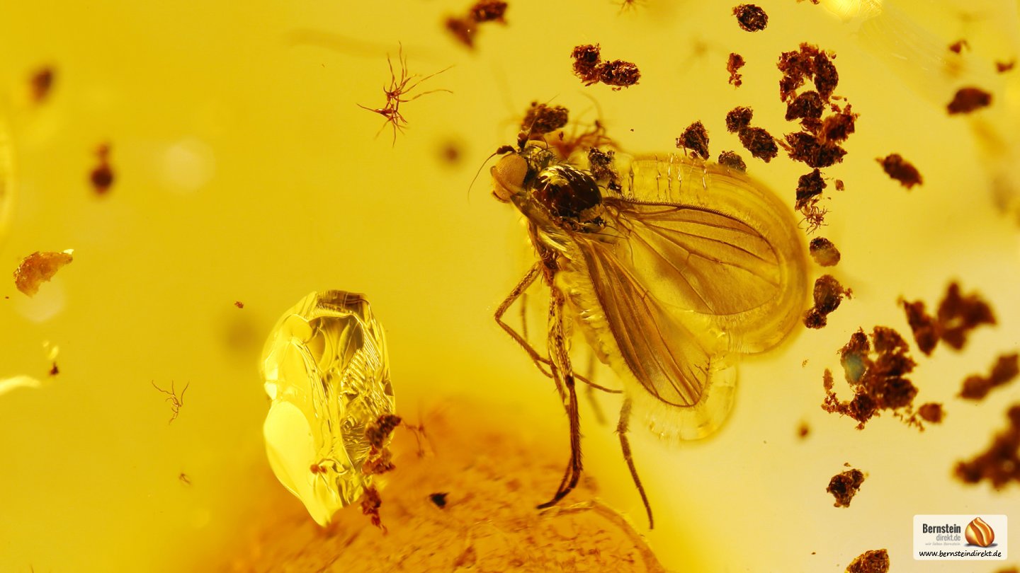 Allgemeine Beschreibung Eine Langbeinfliege und mehrere Pilzmücken als Inklusen in einem 4,8 Gramm großen, sehr schönen Baltischen Bernstein. Eine Wasserwaage (Wassertropfen?), Fliege, Mücken sowie weitere Bernstein Einschlüsse. Auf dem Bernstein ist ein interessanter Abdruck zu sehen, was stark einem Zapfen (Fruchtstand?) ähnelt. Vielleicht ein kleiner Hinweis auf den Bernsteinwald? Herkunft: Baltischer Bernstein (Succinit)Artikelnummer: BI1703002 Maße und GewichtMaße: 28,8 x 27,6 x 11,7Gewicht: 4,80 g
