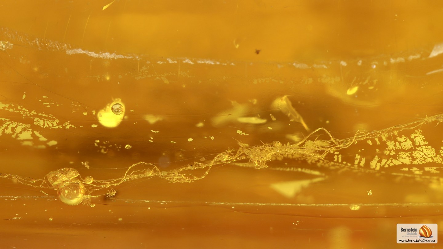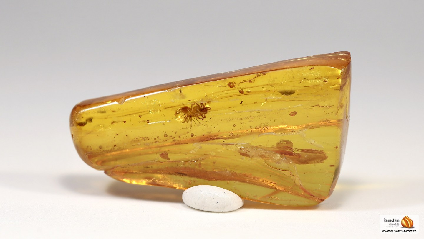 Allgemeine Beschreibung Eine Webspinne mit Spinnfäden als Rarität in einem 2,6 Gramm großen Baltischen Bernstein. Spinnenseide, eine Spinne und zwei Mücken als Einschlüsse in einem honiggelben Bernstein mit schöner Harzfließ-Struktur und interessanten Maserungen. Herkunft: Baltischer Bernstein (Succinit)Artikelnummer: BI1809005 Maße und GewichtMaße: 33,9 x 17,1 x 7,3Gewicht: 2,63 g 10