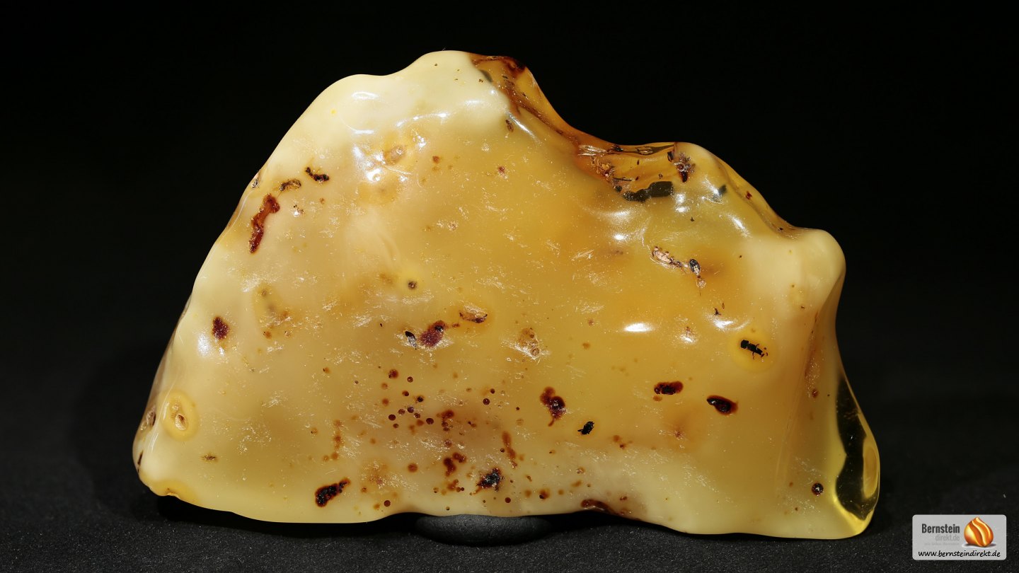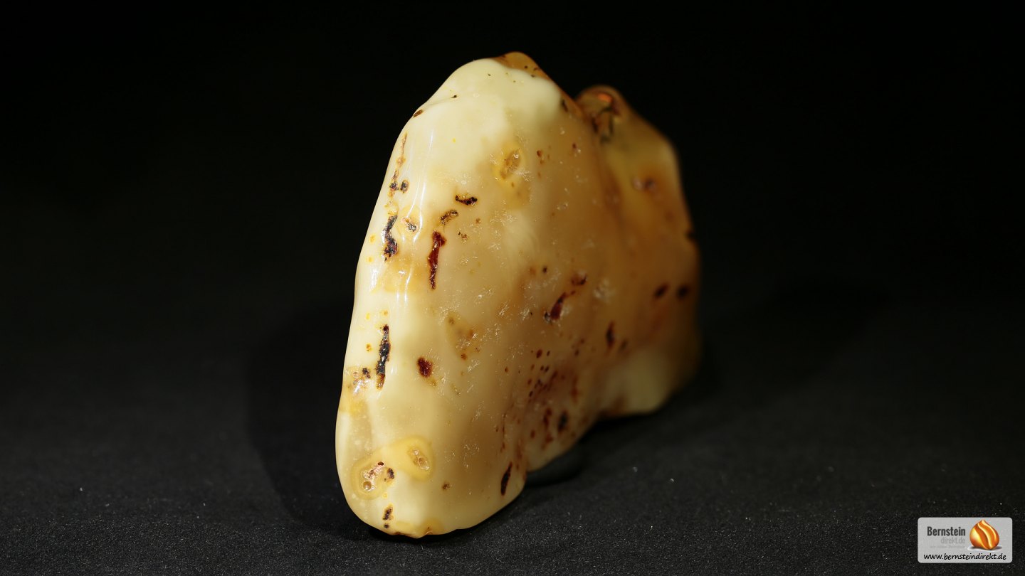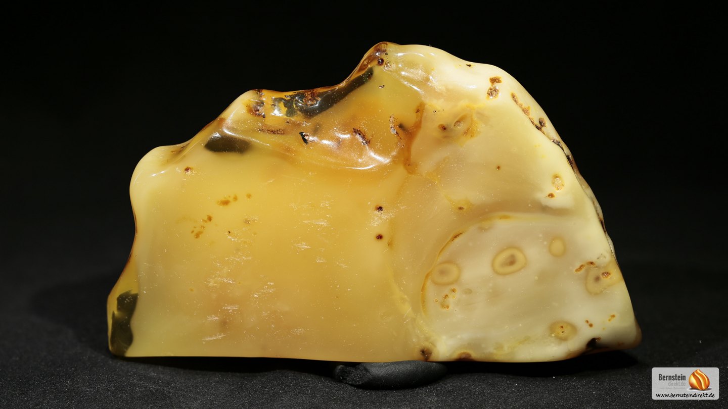 Allgemeine Beschreibung Ein sehr formschöner und 105,6 Gramm großer Baltischer Bernstein, geschliffen und poliert. Ein einzigartiger Naturbernstein (Butterscotch), an zwei Stellen leicht transparent (absolut klar) und mit einigen interessanten Insekten Einschlüssen. Herkunft: Baltischer Bernstein (Succinit)Varietät: Bastard, trüber Bernstein, opaker BernsteinArtikelnummer: BN1811001 Maße und GewichtMaße: 115,6 x 70,3 x 22,4Gewicht: 105,60 g