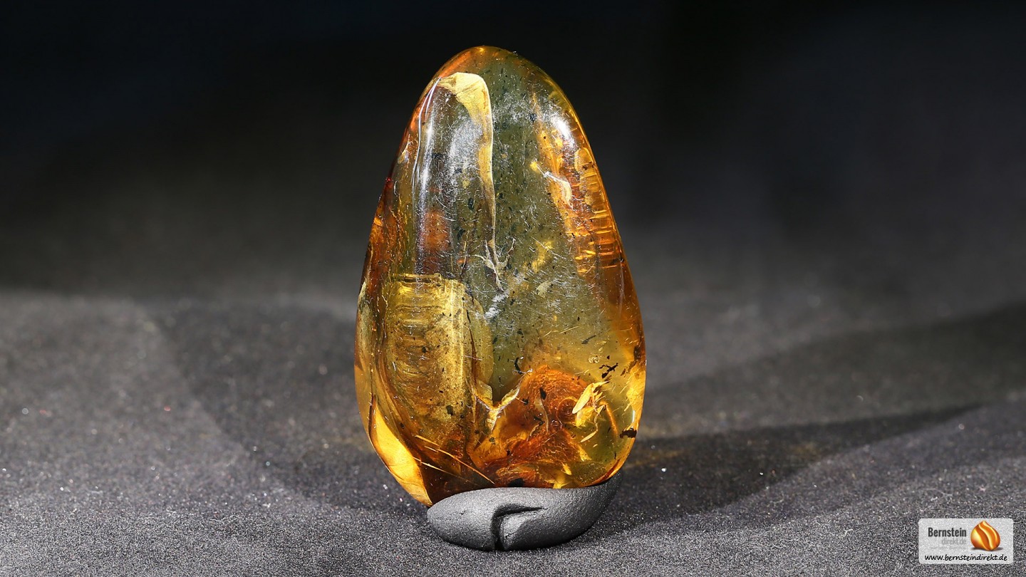 Allgemeine Beschreibung Ein 18,9 Gramm großer Bernstein überwiegend klar, geschliffen und poliert. Der Bernstein wurde durch Erhitzen geklärt um ihn fester zu machen und eventuelle Trübungen zu entfernen. Durch die verbesserte Festigkeit und Härte eignet es sich besonders gut als Schmuckstein. Eine schöne und glatte Form, die Farbe ist rötlich bis honiggelb. Im Bernstein ist eine Art Blatt zu sehen. Herkunft: AndereVarietät: Klar, klargelber BernsteinArtikelnummer: BN1801002 Maße und GewichtMaße: 53,7 x 33,7 x 21,4Gewicht: 18,90 g