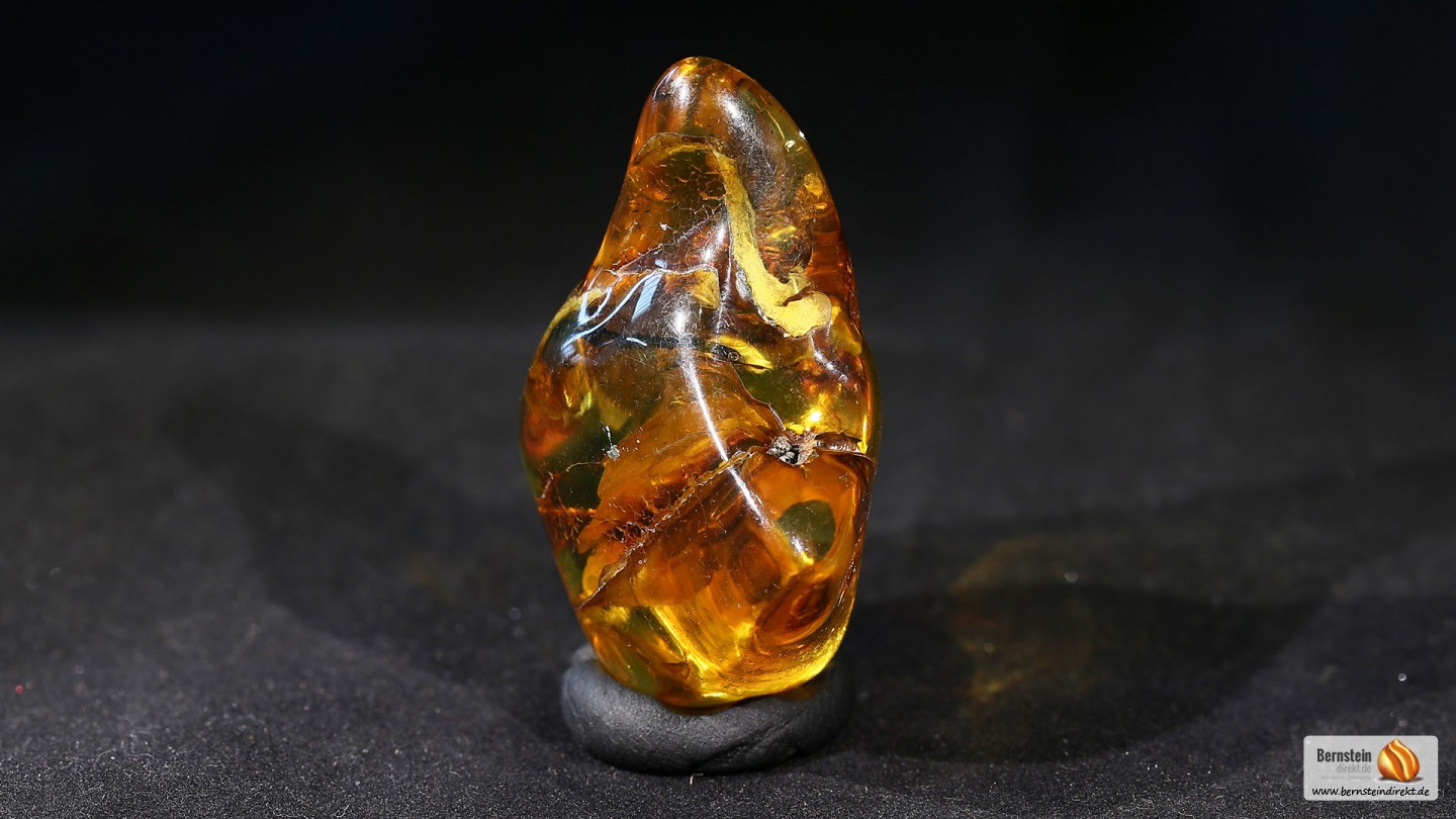 Allgemeine Beschreibung Ein 23,4 Gramm großer Bernstein überwiegend klar, geschliffen und poliert. Der Bernstein wurde durch Erhitzen geklärt um ihn fester zu machen und eventuelle Trübungen zu entfernen. Durch die verbesserte Festigkeit und Härte eignet es sich besonders gut als Schmuckstein. Eine schöne und glatte Form, die Farbe ist rötlich bis honiggelb. Im Bernstein sind ein dünner Ast und eine Art Blatt zu sehen. Herkunft: AndereVarietät: Klar, klargelber BernsteinArtikelnummer: BN1801022 Maße und GewichtMaße: 43,4 x 43,2 x 27,7Gewicht: 23,40 g