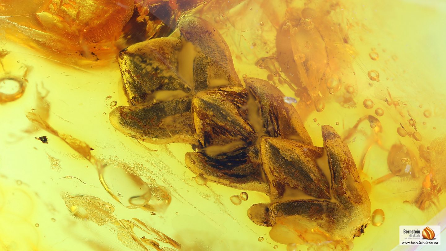 Allgemeine BeschreibungEin Zypressen-Zweig im Baltischen Bernstein. Zypresse als pflanzlicher Einschluss im Bernstein. Herkunft: Baltischer Bernstein (Succinit)
